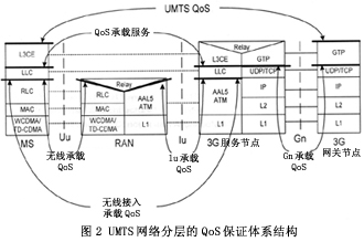 1. UMTS分層體系結(jié)構(gòu)和QoS控制的層間映射/分段保證機制
