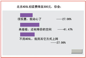 2002年12月,中國網(wǎng)通北京通信公司發(fā)起了一次降價(jià)活動(dòng),先是將原定今年12月20日到期的512k ADSL上網(wǎng)費(fèi)的半價(jià)優(yōu)惠向后延續(xù)半年期限,緊接著,ADSL初裝費(fèi)從最初的1300元降至300元,降幅達(dá)千元,動(dòng)作之大、降幅之高,令業(yè)界嘩然。不難發(fā)現(xiàn),DSL不僅要延續(xù)原有的市場分額,還要搶占Cable Modem與以太網(wǎng)的半壁江山|