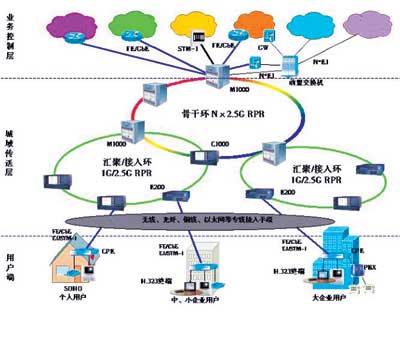世界著名電信雜志Lightreading在評論2002年十大熱點電信技術(shù)時認為,隨著基于IP應用的迅速發(fā)展,承載網(wǎng)絡的概念逐漸從傳統(tǒng)的時分復用網(wǎng)絡向能提供TDM業(yè)務和分組業(yè)務的新型承載網(wǎng)過渡。彈性分組環(huán)(RPR)技術(shù)正是為了適應這種變化應運而生的,并與NGN、3G移動通信并列為電信網(wǎng)絡發(fā)展的主要方向。