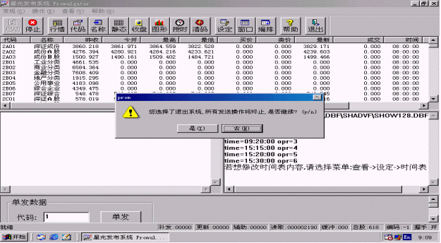 選擇<行情>按鈕進(jìn)行證券信息發(fā)布,系統(tǒng)自動(dòng)彈出<提示>窗口,如圖3.5