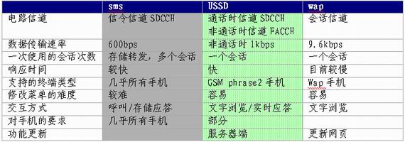 最后,根據(jù)上述分析給出SMS、USSD、WAP三者異同點的列表,如下表所示。