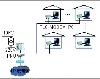 利用普通220V電源線作載體,將IP寬帶信號接入每個家庭的PLC(Power Line Communication)網絡正在進入小區(qū)/樓宇市場。它是通過電力線網絡單元(PNU)將寬帶接入信號經正交頻分復用(OFDM)調制、匯入小區(qū)/樓宇電力變壓器用戶輸出線上,再經電源線送到各家各戶。PC、IP Phone、Fax設備均可通過房間內部的電源插座寬帶接入Internet。