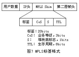 MPLS協(xié)議的關(guān)鍵是引入了標簽(Label)的概念。一對LSR必須在標簽的數(shù)值和意義上一致。例如,下行LSR會給上行LSR發(fā)送一個特定標簽X.代表一個特定的稱作A的FEC。于是,一個標簽只在一對正在通信的LSR之間起作用,并用來表示屬于一個從上行LSR流向下行LSR的特定FEC的分組。MPLS可以支持添加到現(xiàn)有的幀或分組結(jié)構(gòu)(如以太網(wǎng)、PPP)的標簽,也可以利用包含在數(shù)據(jù)鏈路層(如幀中繼和ATM)中的標簽結(jié)構(gòu)。