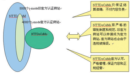 要解決上述問題需要一個(gè)系統(tǒng)化的進(jìn)程,我們可以借鑒NTT DoCoMo的i-mode的管理模式,如圖5所示,這種管理模式的核心思路是將SP分成官方和非官方分別管理,并建立升降級(jí)制度,鼓勵(lì)SP升級(jí)。這樣做的好處是:1.明確運(yùn)營(yíng)商與SP的關(guān)系;2. 明確用戶投訴的對(duì)象;3. 降低SP進(jìn)入門檻,鼓勵(lì)SP開發(fā)業(yè)務(wù)。