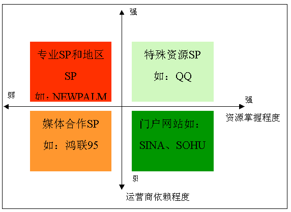 通過(guò)提供網(wǎng)絡(luò)服務(wù)產(chǎn)生強(qiáng)大流量帶動(dòng)無(wú)線業(yè)務(wù)發(fā)展,業(yè)務(wù)收入主要來(lái)源網(wǎng)站推廣,產(chǎn)品常圍繞自有網(wǎng)絡(luò)內(nèi)容策劃、主要收入來(lái)自圖鈴、社區(qū)等網(wǎng)絡(luò)特點(diǎn)鮮明的業(yè)務(wù):搜狐、新浪、網(wǎng)易、TOM;
