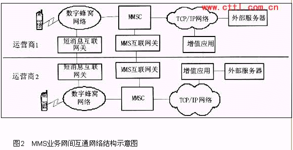(2)不同運營商之間MMS業(yè)務(wù)的互聯(lián)互通。互聯(lián)互通使得用戶在使用MMS業(yè)務(wù)時不受運營商不同的影響,可以在更大范圍內(nèi)更加方便地使用MMS業(yè)務(wù)。