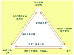 如今,韓國的彩鈴業(yè)務已遍地開花,超過50%的手機用戶在使用彩鈴服務,運營商因此每月能獲得1500萬美元的收益。小彩鈴喚來了大市場。個人用戶無需購買昂貴的終端就可通過彩鈴業(yè)務向外界傳遞個性和情感。商業(yè)用戶將回鈴音設置成廣告/宣傳語,使客戶在與企業(yè)員工交流的同時接收企業(yè)的相關信息,例如企業(yè)文化、產(chǎn)品、銷售信息等,直接或間接地增加了企業(yè)的市場機會。彩鈴業(yè)務為運營商帶來了直接的經(jīng)濟收益,也帶來了特征用戶群,在語音增值業(yè)務中實現(xiàn)了產(chǎn)業(yè)鏈合作。同時,運營商通過對特征用戶群的研究分析發(fā)現(xiàn)了未來商機,并通過在語音增值業(yè)務產(chǎn)業(yè)鏈中引入ICP/ISP達到了資源的有效利用。