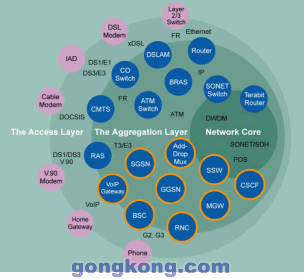 電信應用的范圍如圖2所示,從終端設(shè)備到接入層和匯聚層乃至核心網(wǎng),藍色區(qū)域標出的應用可以有效地運用基于開放標準的技術(shù),例如基于ATCA和PICMG2.16標準。