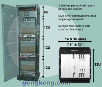 從機械結(jié)構(gòu)的角度看,一個關(guān)鍵技術(shù)與電信機柜有關(guān),一般而言,一個機柜裝載三個機箱和瘦服務(wù)器與報警面板,12U機箱具有14個或16個ATCA槽,如圖7所示,這些機箱可以相互連接并作為一個邏輯單元加以管理。