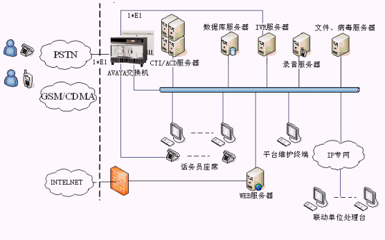 物理上用一臺較高端的服務器來運行CTI中間件軟件包,來構建一個客服中心平臺。