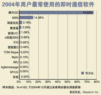 巨大的商機和財富也催生出了眾多的跟風(fēng)者,網(wǎng)易泡泡、新浪聊聊吧、搜狐搜Q等IM軟件層出不窮,與其說他們是看中即時通信市場的強大潛力,更不如說,他們都想要通過IM軟件的形式來爭取短信的流量!拔覀兿Mㄟ^這種形勢,進一步提高新浪在短信方面的競爭力,而且最近的統(tǒng)計數(shù)據(jù)已經(jīng)表明,隨著注冊用戶忠誠度的提高和傳播效果的擴散,我們的市場占有率在穩(wěn)固提高”,新浪聊聊吧項目負(fù)責(zé)人如是說。