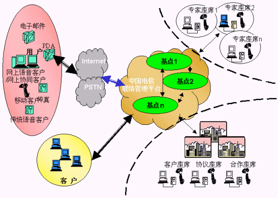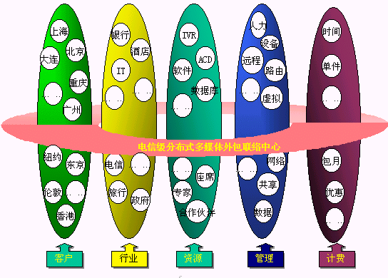電信運營商提供的用戶、客戶、電信公司的統(tǒng)一的聯(lián)系平臺,各類客戶通過使用聯(lián)系平臺,向其用戶提供方便的、不受時間、地域和媒體的限制的"3A"級聯(lián)絡(luò)服務(wù),用戶、客戶、電信平臺間的聯(lián)絡(luò)能得到有效路由、管理、品質(zhì)保障;聯(lián)絡(luò)中心通過將分布在各地、各種媒體、各種形式的資源整合在一起實現(xiàn)客戶服務(wù)增值,創(chuàng)造無限商機,有效提升客戶聯(lián)絡(luò)中心的價值,使用戶得到最貼身的、個性化的、專業(yè)的服務(wù),為客戶提供成本更低、資源更豐富、服務(wù)更專業(yè)、具備強大商業(yè)智能的產(chǎn)品營銷及服務(wù)、電信運營商則開發(fā)大量的增值服務(wù)、產(chǎn)生更多的利潤增長空間、更多忠實的客戶,實現(xiàn)三方面共同成功。