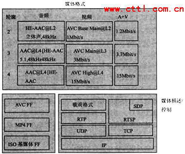 如第二部分所介紹那樣,ISMA致力于多種開放標準的集成,在2004年發(fā)布的ISMA2.0中給出了ISMA對流媒體業(yè)務(wù)的框架結(jié)構(gòu)圖(見圖3)。從圖中可以看出、,ISMA最先希望解決的是與媒體編碼格式、媒體存儲、媒體傳輸(包括載荷輪廓)相關(guān)內(nèi)容。在ISMA目前的體系架構(gòu)中主要希望支持采用MPEG4標準進行編碼的媒體以及相應(yīng)的標準存儲格式以及IETF所規(guī)定的標準傳輸協(xié)議,這與ISMA制定標準的準則相一致。