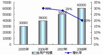 諾盛觀點(diǎn):預(yù)計(jì)2006年移動(dòng)增值業(yè)務(wù)用戶規(guī)模和市場規(guī)模將分別達(dá)到3億和300億,年增長率分別為30%和36%,且未來幾年都將保持高速增長;