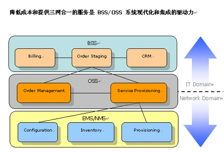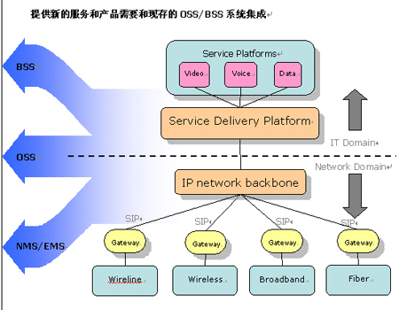 沒有一家電信公司可以花費數(shù)年時間來重新開發(fā)新的服務,服務提供商在舊的計費,開通,網(wǎng)管系統(tǒng)上已經(jīng)進行了大量的投資,現(xiàn)存的大量關鍵系統(tǒng)必須得以重用并平滑過渡到三網(wǎng)合一時代。