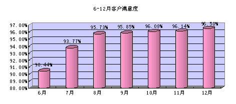 根據(jù)我們的客戶調查(每月一次),客戶對服務人員的業(yè)務能力的滿意度得到持續(xù)改進。具體數(shù)據(jù)如下圖: