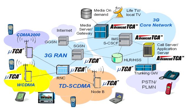 3G網(wǎng)絡(luò)中占主要地位的三個無線接入標(biāo)準(zhǔn)是WCDMA、TD-SCDMA與CDMA2000。3GPP與業(yè)界廠商對網(wǎng)絡(luò)結(jié)構(gòu)的標(biāo)準(zhǔn)化做出的杰出努力,為在世界范圍內(nèi)成功布署3G網(wǎng)絡(luò)業(yè)務(wù)起到了至關(guān)重要的作用。不過,3G網(wǎng)絡(luò)是復(fù)雜的系統(tǒng),包含有多種多樣的網(wǎng)元設(shè)備,AdvancedTCA與MicroTCA技術(shù)的出現(xiàn)把它的實現(xiàn)方式引向了標(biāo)準(zhǔn)化的道路,即通過商用組件快速、低成本地布署3G網(wǎng)絡(luò),減少了各種獨立的實現(xiàn)方式的復(fù)雜性,提高了互操作性。