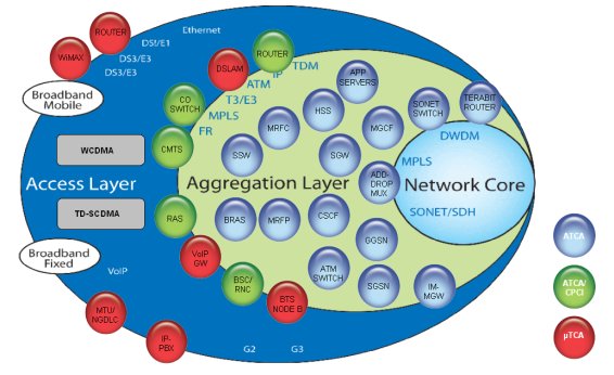 在匯聚層與核心網(wǎng),對高可用性、傳輸容量與事務(wù)處理能力要求很高。ATCA通常是高性能的最佳選擇。mTCA與ATCA可對電信網(wǎng)中要求的操作性與高可用性提供與生俱來的支撐,而其它IT技術(shù)卻做不到。ATCA與mTCA作為一種系統(tǒng)技術(shù),是電信級業(yè)務(wù)與商用組件之間自然而然的選擇。