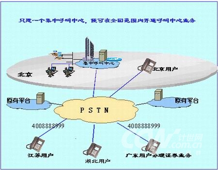 例如,大鵬證券原在部分省市有呼叫中心平臺,用于當?shù)仉娫挼慕尤搿榱私档推髽I(yè)運營成本和拓展業(yè)務覆蓋范圍,大鵬證券計劃繼續(xù)采用呼叫中心方式為客戶提供服務。經(jīng)過對電話網(wǎng)、IP網(wǎng)等多種接入方式的比較分析,最終確定采用中國電信"一碼通"業(yè)務。