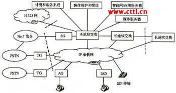 Access Media Gateway)、中繼媒體網(wǎng)關(guān)(Trunk Media Gateway)、綜合接入設(shè)備(IAD)等。圖1所示為軟交換系統(tǒng)測(cè)試邏輯組網(wǎng)圖。
