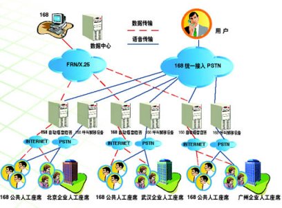 1、集中式接入服務(wù)功能:"企業(yè)客戶服務(wù)系統(tǒng)"為企業(yè)集中式的人工座席提供接入服務(wù)。當(dāng)全國各地的消費(fèi)者在使用168電話中自動語音應(yīng)答功能遇到一些系統(tǒng)設(shè)計好的答案無法解決的模糊問題時,消費(fèi)者只要按"0"號鍵,電話就會被集中轉(zhuǎn)到企業(yè)設(shè)在某一城市的服務(wù)人員座席上,由專業(yè)人員來提供服務(wù)支持。此種功能適合于在一個城市設(shè)立人工座席的企業(yè)用戶。