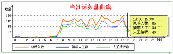 3.3 呼叫監(jiān)控。系統(tǒng)隨時(shí)提供話務(wù)曲線,反映95598熱線整體的服務(wù)水平,如下圖:
