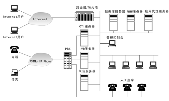 傳統(tǒng)的CTI是指計算機電話集成(Computer Telephony Integration),國外將其統(tǒng)稱為CT(Computer Telephony)。最初的目的是為了讓計算機能夠處理電話語音信號,一般需要通過一些語音板卡來提供硬件支持。隨著計算機網(wǎng)絡(luò)與電信技術(shù)的不斷發(fā)展,出現(xiàn)了不斷融合、不斷滲透的趨勢,其中的計算機技術(shù)尤其以Internet為代表,取得了飛速的發(fā)展,而電信網(wǎng)絡(luò)也從最初的單純通話的電話網(wǎng)絡(luò),發(fā)展成了以光纖、ATM為基礎(chǔ),傳輸多媒體信息的通信網(wǎng)絡(luò),同時還加強了提供附加值業(yè)務(wù)的能力。如今,“CTI”中的“T”已經(jīng)從傳統(tǒng)的“Telephony”發(fā)展成為如今的“Telecommunication”,因此,我們把CTI定義為“計算機電信集成技術(shù)(Computer