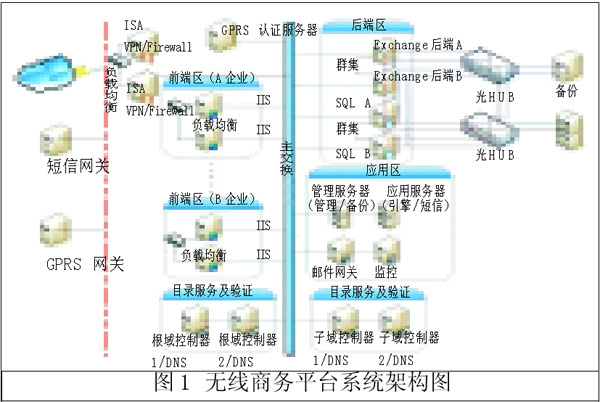 無線商務(wù)平臺(tái)以微軟活動(dòng)目錄服務(wù)和Exchange服務(wù)器為平臺(tái)搭建,操作系統(tǒng)可以采用MS Windows 2003 Server,企業(yè)郵箱采用MS