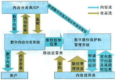 版權(quán)技術(shù)就是數(shù)字內(nèi)容版權(quán)管理(DRM)技術(shù),即給數(shù)字內(nèi)容一定的控制和標(biāo)識(shí),避免其被非法使用、拷貝和盜版,為基于內(nèi)容的各種增值業(yè)務(wù)發(fā)展提供安全保證。目前,數(shù)字版權(quán)管理技術(shù)正由第一代向第二代發(fā)展。DRM1.0技術(shù)主要用于內(nèi)容的保護(hù),DRM2.0主要加強(qiáng)通信保護(hù)和密鑰保護(hù),這正是移動(dòng)網(wǎng)需要的。