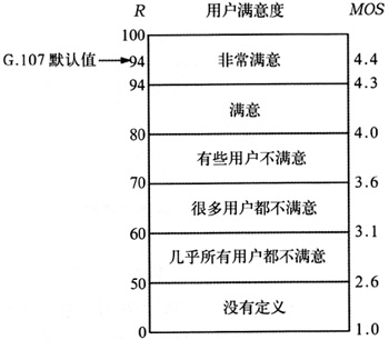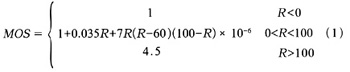 。5)MOS值,MOS模型是主觀評價(jià)方法,根據(jù)E模型MOS值是通過R值計(jì)算得到的。MOS值是1~5之間的數(shù),1是最差的,5是最好的[6]。R和MOS值的關(guān)系式如下所示: