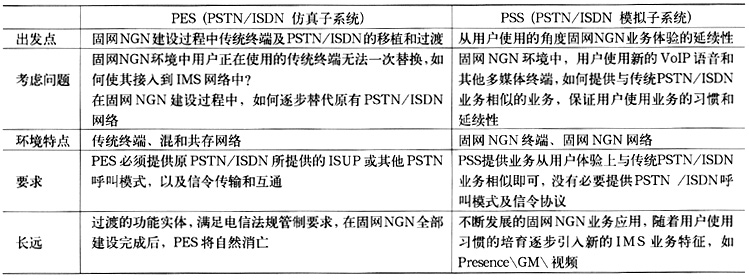業(yè)務(wù)層的PSS和PES子系統(tǒng)針對(duì)不同的終端類型和業(yè)務(wù)需求而設(shè)計(jì)。使用PSS和PES主要目的是使寬窄帶域完全分離,即SIP用戶通過(guò)PSS子系統(tǒng)完成接入和業(yè)務(wù)提供,窄帶用戶通過(guò)PES子系統(tǒng)完成接入和業(yè)務(wù)提供。具體比較如表2所示。