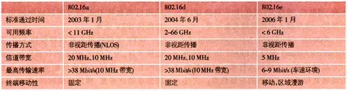 表1 802.16系統(tǒng)各標(biāo)準(zhǔn)特點