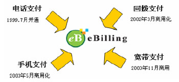 圖1 eBilling業(yè)務(wù)的4種支付方式及推出時間