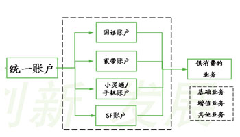 由于目前我國的信用體系尚不完善,所以,電信企業(yè)自身需要首先完善企業(yè)級的客戶信用體系,而設(shè)立統(tǒng)一實名制賬戶是完善客戶信用體系的有效途徑。首先,建立實名制賬戶便于固網(wǎng)運營商構(gòu)建相對完整、準確的客戶信息資料庫。其次,通過建立統(tǒng)一賬戶,可以將目前彼此孤立的固定電話、小靈通、寬帶、未來的手機業(yè)務(wù)及增值業(yè)務(wù)等各子消費賬戶相關(guān)聯(lián),從而方便運營商建立客戶業(yè)務(wù)記錄,以及對多消費賬戶進行統(tǒng)一的信用管理。第三,運營商可以針對統(tǒng)一賬戶的消費總額提供積分獎勵,增加用戶黏度。統(tǒng)一賬戶與各消費賬戶的關(guān)聯(lián)關(guān)系如圖4所示。