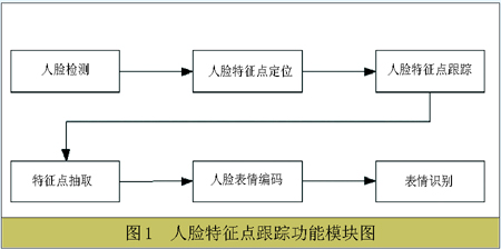 該模塊首先進行人臉檢測,對眼角、嘴角等特征點進行粗略定位,然后根據(jù)小波變換進行精細定位,最終得到較為精細的人臉表情參數(shù)初始值。之后運用Lucas-Kanade算法進行特征點的跟蹤,利用跟蹤得到的特征點位置首先根據(jù)Ekman的人臉表情編碼規(guī)則進行編碼,然后根據(jù)所得到的編碼結果進行表情識別。該系統(tǒng)不僅實現(xiàn)了全自動的特征點定位和跟蹤,而且根據(jù)人臉特征點的分布模型,可以對跟蹤時特征點的丟失現(xiàn)象進行補償。