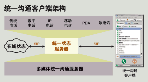 從MSN、QQ提供的語音聊天到曾經(jīng)風(fēng)靡一時(shí)的Skype,再到今天思科、北電、微軟、Avaya等推出的統(tǒng)一溝通桌面客戶端系統(tǒng),通信的“最后一公里”發(fā)生了根本的轉(zhuǎn)變。原來為了節(jié)省長途話費(fèi)而設(shè)計(jì)的VoIP,今天和ERP、CRM一樣成為了以提高企業(yè)運(yùn)營效率為目的的核心生產(chǎn)力系統(tǒng)。統(tǒng)一溝通最令人憧憬的未來是給最終用戶提供一個(gè)友好的通信界面:“所有的信息源匯總到一起,而用什么方式來取得這個(gè)信息,只要在手邊最方便的工具上輕輕點(diǎn)擊就OK了。”