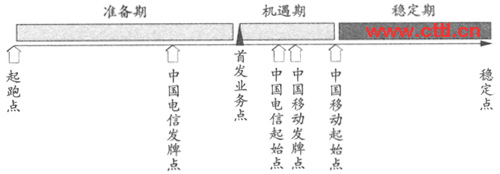 - 被動(dòng)期是指從中國(guó)電信首發(fā)業(yè)務(wù)起始點(diǎn)到中國(guó)移動(dòng)進(jìn)行全業(yè)務(wù)運(yùn)營(yíng)起始點(diǎn)這段時(shí)期。這其中包含了中國(guó)電信發(fā)牌時(shí)間點(diǎn)和中國(guó)移動(dòng)發(fā)牌時(shí)間點(diǎn)。