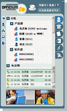 這一系列產(chǎn)品的特點主要是針對國內(nèi)網(wǎng)絡的特點研發(fā),適應能力強,兼容性廣。并且配套提供 IP PBX 綁定的聊天工具,該工具界面(如圖)同QQ、MSN貌似。按所分配的賬戶密碼登陸,可對個人和PBX的彩鈴和分機狀態(tài)調(diào)整,可以按需要更換指定總機和交接總機,在小助理上可以使用個人電話通訊錄,支持在線信息群發(fā)和手機短信群發(fā)等功能。