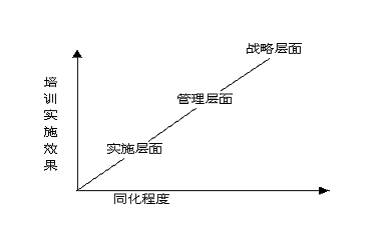為了確保培訓(xùn)實(shí)施效果能達(dá)到預(yù)期的效果及水平即達(dá)到預(yù)期的認(rèn)識(shí)水平,來自于管理層的執(zhí)行力必不可少,任何一項(xiàng)培訓(xùn)工作如果不能自下而下的進(jìn)行“洗腦”即同化過程,很難保證培訓(xùn)效果。簡(jiǎn)言之,我們需要從戰(zhàn)略角度到管理層面直到實(shí)施層面的同化過程。