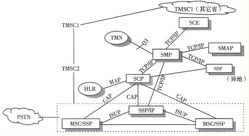 這是用戶進(jìn)入移動(dòng)智能網(wǎng)的接入點(diǎn),與某交換局綜合在一起,IP設(shè)置于SSP中。它是一個(gè)交換機(jī),用來識(shí)別用戶的呼叫,把用戶的請(qǐng)求傳送給業(yè)務(wù)控制點(diǎn)。SSP可最初設(shè)在高等級(jí)交換局(長(zhǎng)途局),逐步在匯接局和端局綜合設(shè)置。SSP的No.7信令軟件應(yīng)具備MTP、TUP或ISUP、SCCP、TCAP和INAP。