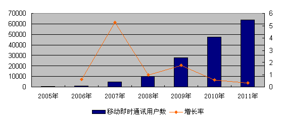 中國移動(dòng)即時(shí)通訊用戶規(guī)模發(fā)展?fàn)顩r(2005-2011)
