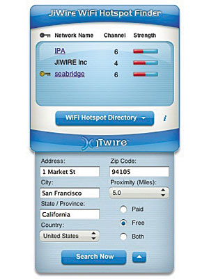 當(dāng)你需要進(jìn)行緊急無線接入時(shí),有一種方便、免費(fèi)能找到附近熱點(diǎn)的辦法。運(yùn)行這個(gè)程序并輸入你所在的位置,這個(gè)程序?qū)⒘谐龈浇乃袩狳c(diǎn)。它將幫你搜索到付費(fèi)的或免費(fèi)的熱點(diǎn),并保持程序數(shù)據(jù)庫的頻繁更新。
