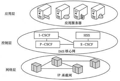 隨著通信技術(shù)不斷發(fā)展,通信網(wǎng)絡(luò)寬帶化成為一個(gè)明顯的發(fā)展趨勢。為了適應(yīng)這個(gè)發(fā)展趨勢,向用戶提供更加豐富的移動(dòng)業(yè)務(wù)。3G移動(dòng)通信標(biāo)準(zhǔn)組織(3GPP)在R5版本中提出了IP多媒體子系統(tǒng)(IMS)的技術(shù)架構(gòu)[1],其核心思想是在3G網(wǎng)絡(luò)中引入支持IP多媒體業(yè)務(wù)的子系統(tǒng)。IMS的技術(shù)特點(diǎn)在協(xié)議層面上來說。就是控制和應(yīng)用分離,如圖1所示。控制層采用會(huì)話初始化協(xié)議(SIP),應(yīng)用層支持各類IP以上的應(yīng)用層協(xié)議,如RTP、FTP、SMTP等。在網(wǎng)絡(luò)層面上來說,IMS采用承載網(wǎng)和控制網(wǎng)分離的原則。由于上述技術(shù)特點(diǎn),在IMS網(wǎng)絡(luò)上推出多媒體業(yè)務(wù)比3G