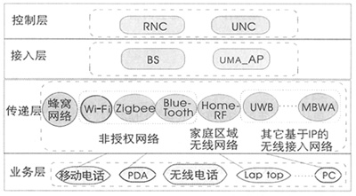 (1)對于固網(wǎng)運營商而言,由于UMA采用的是免費的無須申請的ISM頻段,因此在沒有移動牌照的情況下,它可以被固網(wǎng)運營商采用并藉其介入移動市場,且利用現(xiàn)有資源架構(gòu)UMA網(wǎng)絡,成本相對低廉。