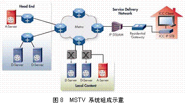 Servers)是用于從運(yùn)營商網(wǎng)絡(luò)中的多個采集點(diǎn)分發(fā)視頻內(nèi)容以保證視頻的快速傳送以及最快的頻道切換時間。在用戶側(cè)的IP機(jī)頂盒則運(yùn)行微軟公司獨(dú)有的軟件和協(xié)議以保證最優(yōu)的性能。