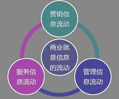 我們把商業(yè)信息化的需求特征進(jìn)行分析,用以下三種信息互動(dòng)概括:營(yíng)銷信息互動(dòng)、管理信息互動(dòng),服務(wù)信息互動(dòng)。