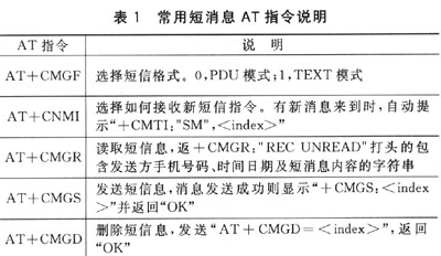 常用短消息相關(guān)AT指令及說明如表1所列。