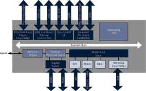 集成式千兆位以太網(wǎng)交換機可很好地配合網(wǎng)絡(luò)處理器,允許不同橋接和路由服務(wù)靈活組合,而不會不恰當?shù)卦黾討?yīng)用CPU的負擔。兩個 USB 2.0 接口為所有通用外設(shè)提供了連接的便利性。隨著媒體格式的數(shù)字化,最終用戶需要管理的文件數(shù)量和容量均大幅增加。集成的千兆位以太網(wǎng)交換機和通過WLAN實現(xiàn)的150Mb/s 以上的數(shù)據(jù)傳輸速率為此提供了最佳支持。如圖3所示,其他快速接口還包括:帶DMA支持的SPI、雙UART(包括 RS-232)和PCI接口。