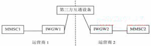 為實(shí)現(xiàn)不同運(yùn)營商的用戶之間相互發(fā)送和接收多媒體消息,需要在不同運(yùn)營商的多媒體消息中心之間實(shí)現(xiàn)互通。該互通需要多媒體消息中心(MMSC)與互通設(shè)備(IWGW)的連接、IWGW之間的連接實(shí)現(xiàn)。當(dāng)一個運(yùn)營商的網(wǎng)絡(luò)用戶向另一個運(yùn)營商的網(wǎng)絡(luò)用戶發(fā)送多媒體消息時,該多媒體消息經(jīng)發(fā)送方用戶歸屬的MMSC通過IWGW提交給接收方用戶歸屬的多媒體消息中心,由接收方用戶歸屬的MMSC向其網(wǎng)內(nèi)用戶發(fā)送。網(wǎng)間多媒體消息業(yè)務(wù)互通網(wǎng)絡(luò)結(jié)構(gòu)中主要包括多媒體消息中心(MMSC),互通設(shè)備(IWGW)以及相關(guān)的輔助設(shè)備等。IWGW是指不同運(yùn)營商網(wǎng)絡(luò)之間的多媒體消息互通設(shè)備。網(wǎng)間多媒體消息互通設(shè)備間的互聯(lián)可以由兩個運(yùn)營商的IWGW直接連接,也可以經(jīng)過第三方互通設(shè)備轉(zhuǎn)接(見圖1、圖2)。