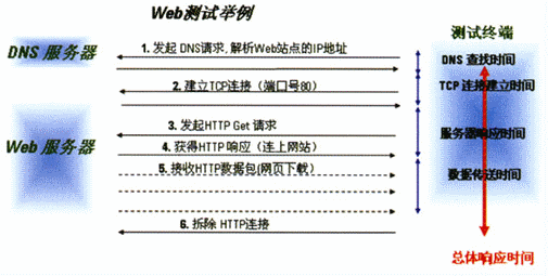 在用戶對無線數(shù)據(jù)業(yè)務(wù)的訪問過程中,通常會包含多個階段(業(yè)務(wù)處理過程)。如當用戶在使用手機要瀏覽網(wǎng)頁的時候,先輸入網(wǎng)頁的地址,然后按手機上的“訪問”按鈕,一段時間后手機的屏幕上就會顯示出要瀏覽的網(wǎng)頁頁面?此坪唵蔚倪^程,其實這里面包含了以下幾個步驟:DNS查找時間、TCP連接時間、服務(wù)器響應(yīng)時間和數(shù)據(jù)下載時間。在這中間,只要任何一步出了問題,如DNS解析時間過長、TCP連接建立時間過長、應(yīng)用服務(wù)器負載過重、網(wǎng)絡(luò)可用信道資源少而造成數(shù)據(jù)下載慢,都可能會造成頁面下載失敗。因此,為了能準確地定位造成用戶對Web服務(wù)質(zhì)量感知度差的原因,我們就需要得到各階段的性能參數(shù),這樣才能快速地進行相關(guān)服務(wù)器和網(wǎng)絡(luò)的故障查找并解決問題。